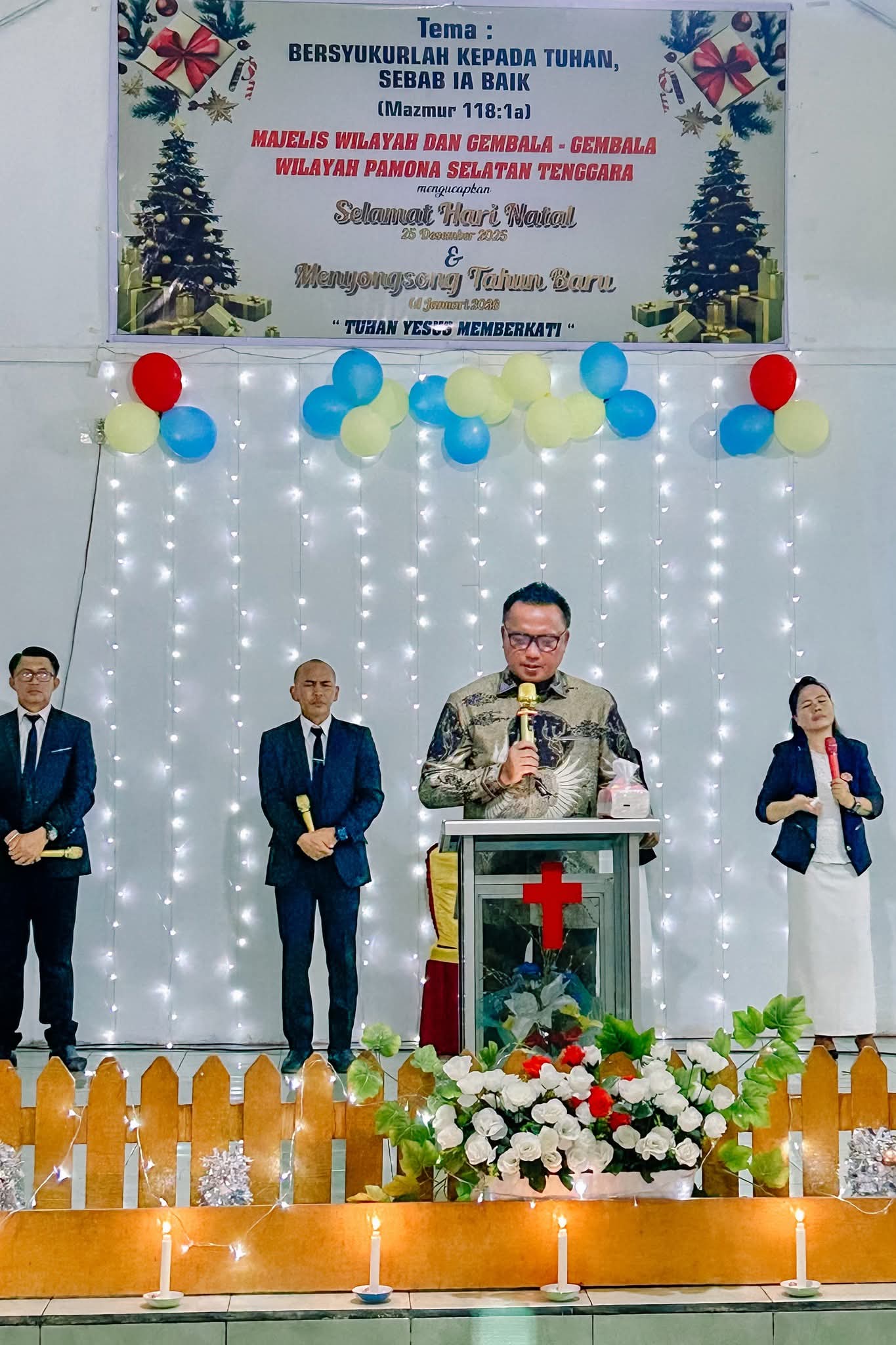 PANDAYORA PAMSEL – Bupati Morowali Utara, Dr. dr. Delis Julkarson Hehi, MARS, mengawali rangkaian pelayanan Natal tahun 2025 dengan memenuhi undangan khusus untuk membawakan firman Tuhan pada Perayaan Natal Majelis Wilayah dan Gembala-Gembala Wilayah Pamona Selatan Tenggara. kegiatan tersebut berlangsung di GPdI Agape Pandayora, Kecamatan Pamona Selatan, Kabupaten Poso, pada Selasa (25/11/2025).